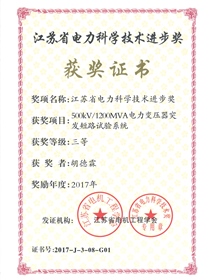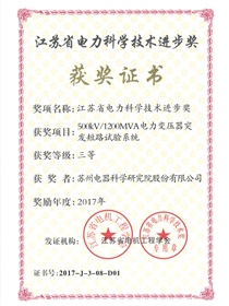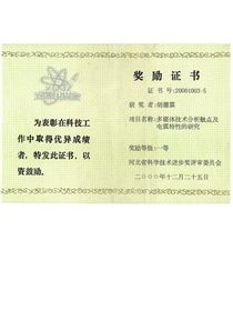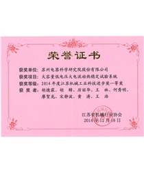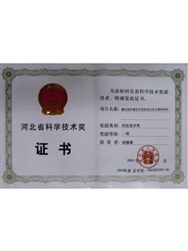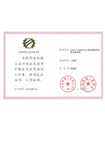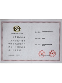 • 中國機械工業科學技術獎證書-科技進步獎三等獎