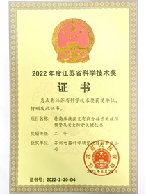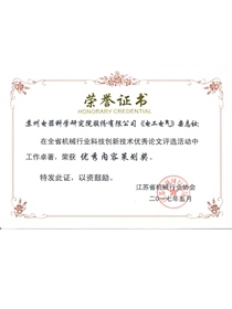 • 江蘇省機械行業創新型先進企業(獎狀)