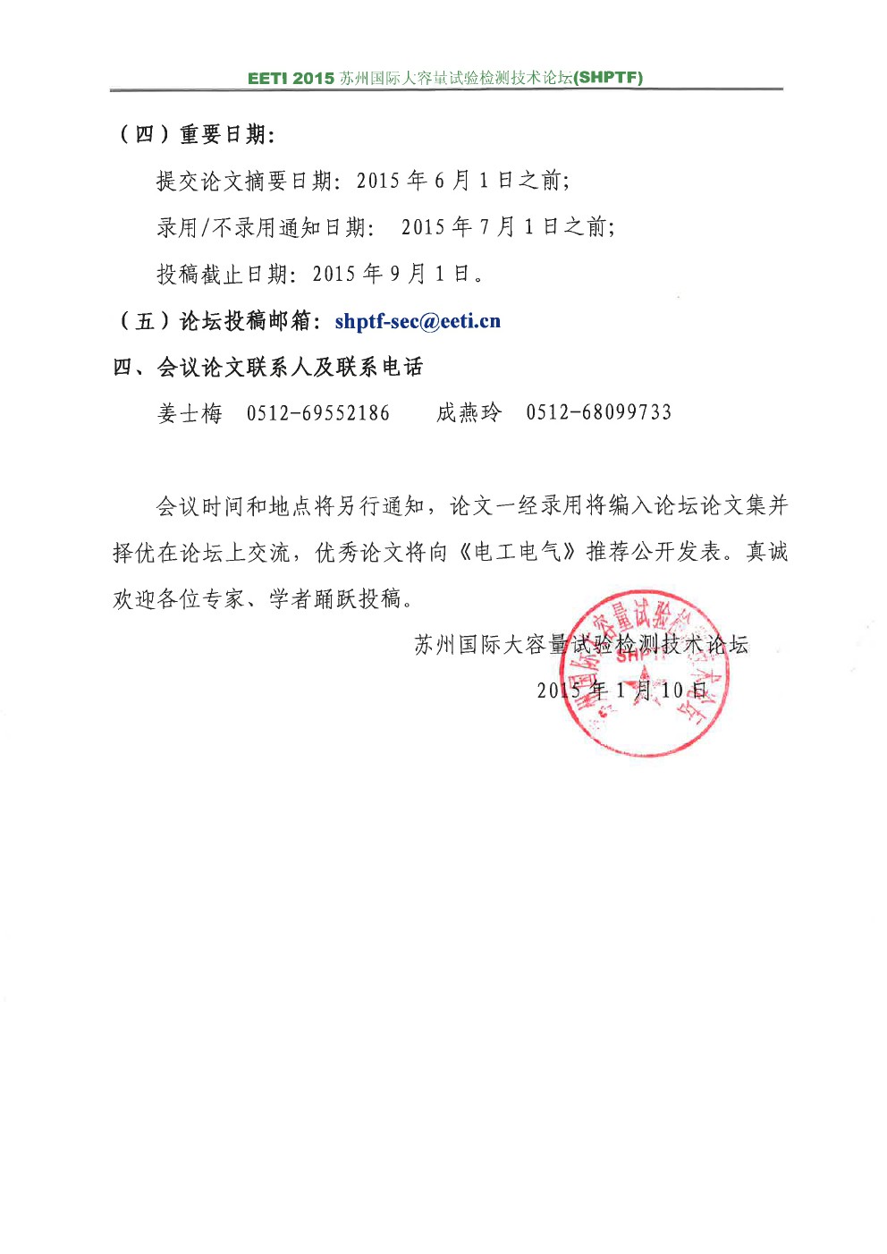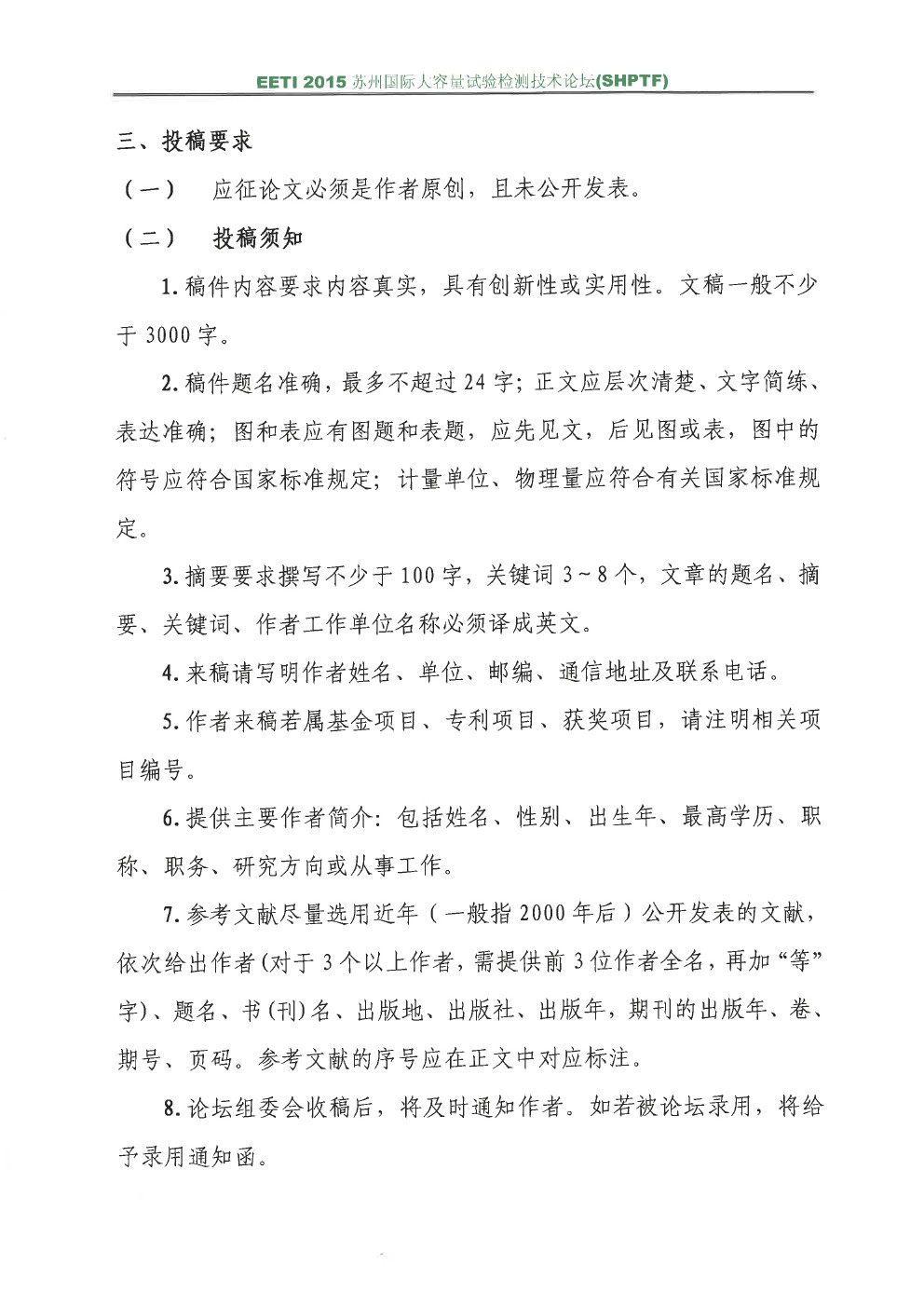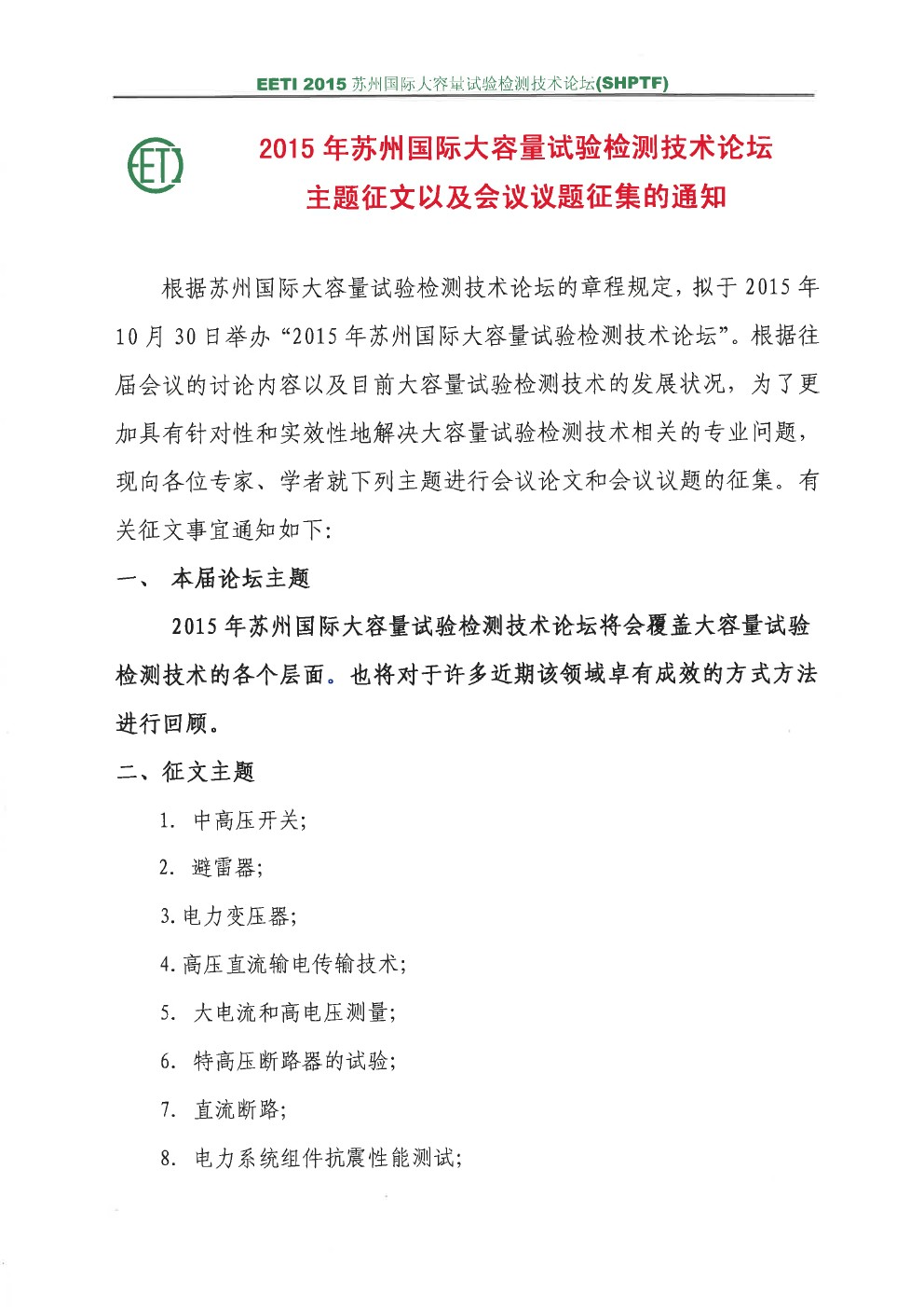 2015年蘇州國際大容量試驗檢測技術論壇征文通知
