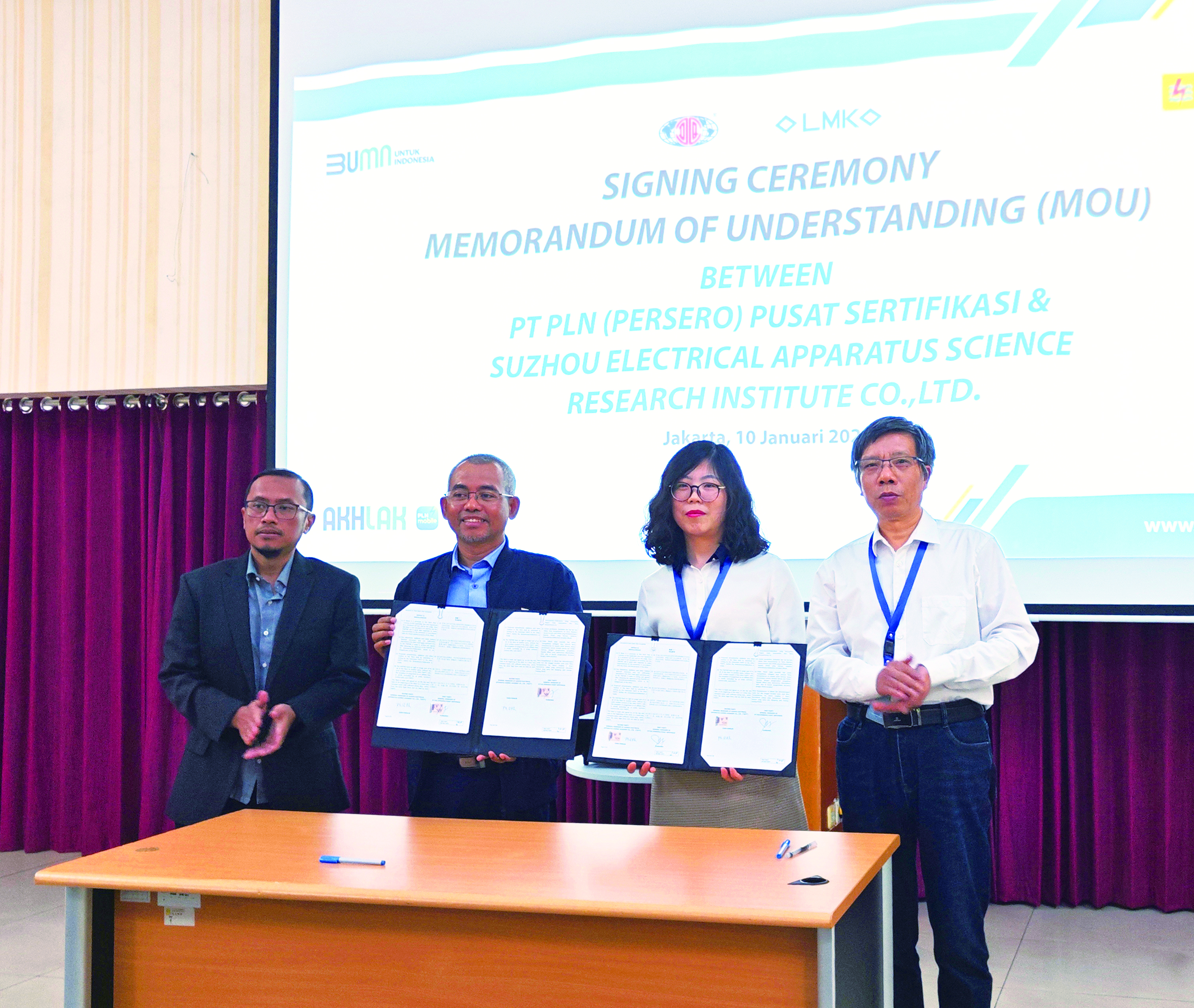 2024110日,國(guó)內(nèi)輸變電能源裝備檢測(cè)領(lǐng)域領(lǐng)軍企業(yè)之一蘇州電器科學(xué)研究院股份有限公司(下稱蘇州電科院)與印尼國(guó)家電力公司PT PLN(PERSERO)在印尼雅加達(dá)PT PLN(PERSERO)總部舉行簽約儀式,簽署戰(zhàn)略合作備忘錄協(xié)議。