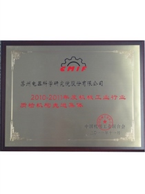 • 2010-2011 Machinery Industry Axcellent Quality Supervision Institute