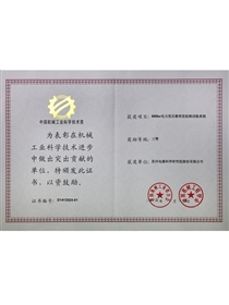 • Third Science and Technology Award of the China Machinery Industry (Certificate)