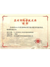 • Suzhou Second Award for Scientific and Technological Progress in 2011