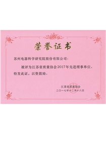 • Advanced governing unit of Jiangsu Quality Association in 2017