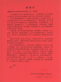 • Commendatory Letter (Suzhou Wuzhong District Charity Federation)