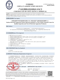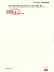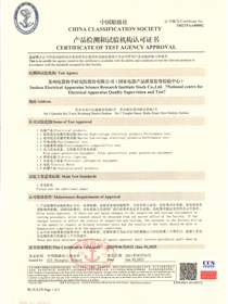 CHINA CLASSIFICATION SOCIETY CERTIFICATE OF TEST AGENCY APPROVAL-Electrical products (front)