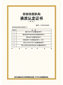 Qualification certificate of Machinery Industry Center for Quality Supervision and Test of Automotive Electronic and Electrical Products