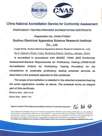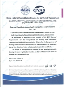 CNAS accreditation certificate ISO/IEC 17025:2017